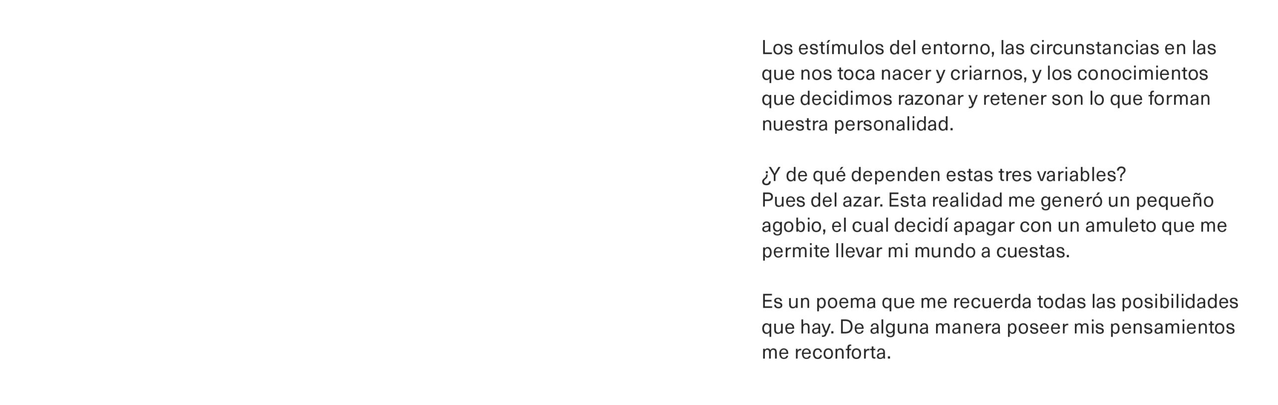 Cada unx lo llevará dependiendo de su personalidad. Aunque operemos sobre el mismo plano de lo real, cada persona va a hacer algo único. Acá mi manera de llevar el mundo a cuestas.