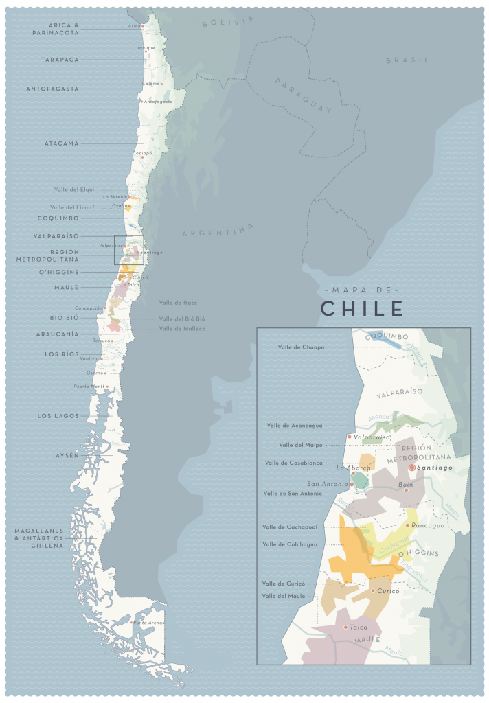 Recursos Ilustración Proyecto Mapas de regiones vinícolas Creamos estos mapas como herramienta de presentación para una selección de vinos que se llevaban desde América del Sur y España hasta Australia.